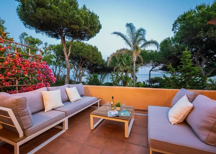 В пляжній Вілла Venalmar First Line Townhouse, Garden, Sea Views Естепона є тераса з видом на гори, а також відкритий басейн.